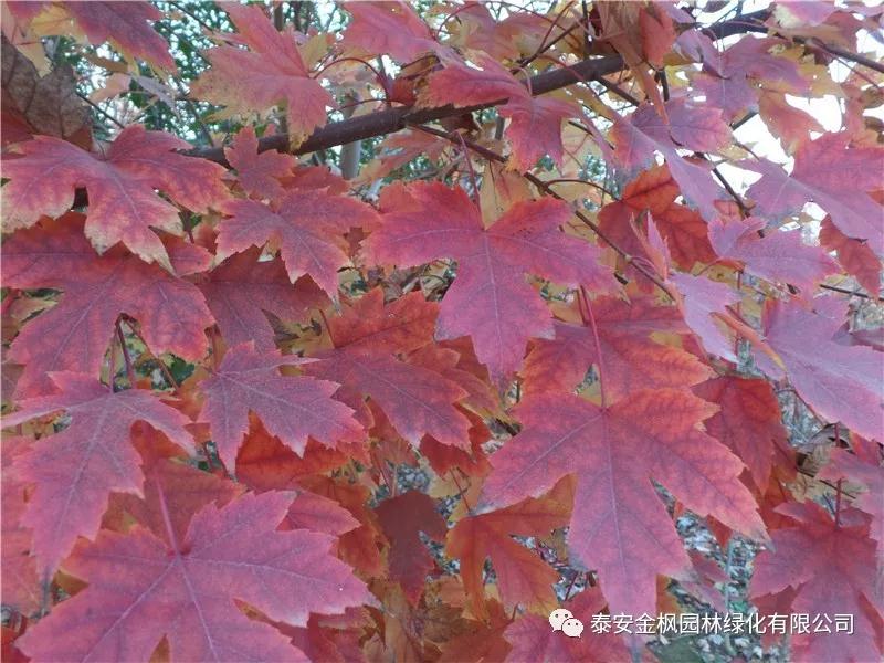 美國(guó)紅楓(學(xué)名:Acer rubrumL. ):原產(chǎn)于美國(guó)東海岸,主要來(lái)自于美國(guó)北部以及加拿大大部分地區(qū)。是落葉大喬木。生長(zhǎng)較快,成年樹高12-18米,冠幅12米,能適應(yīng)多種范圍的土壤類型生長(zhǎng)。春天開花,花紅色。因秋季色彩奪目,樹冠整潔,被廣泛應(yīng)用于公園、小區(qū)街道栽植,既可以園林造景又可以做行道樹,深受人們的喜愛,是近幾年引進(jìn)的美化、綠化城市的理想珍稀樹種之一。也是唯一可以用作行道樹的彩葉樹種。